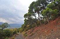 Ukraine's climate influences the country's distinctive forest stands.[7] Deciduous make up 52% with the balance being coniferous. The most densely forested area of Ukraine is in the northwest in Polisia where pine, oak, and birch are the main tree species. In the north-central area, where the forest-steppe belt is located, the main species are oak, pine, hornbeam. In the southeast area, the steppe-belt is situated, oak and pine are the main species. Mountainous areas are characterized by three different zones: lower slopes contain mixed forests, higher elevations contain pine forests, and the highest altitudes contain alpine meadows. In the Carpathian Mountains, beech, oak, and spruce are the main tree types, while in the Crimean Mountains, beech and oak form the largest numbers.[8] Along the Crimean peninsular coast, the vegetation is characterized by deciduous and evergreen plants.[9]