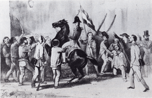 On 8 July 1814, he was promoted to lieutenant-general in the British Army,[7] and on 25 July to general.[8] As such, he was senior officer of the Allied army in the Low Countries when Napoleon I of France escaped from Elba in 1815. He relinquished command on the arrival of the Duke of Wellington, and, though this was his first real battle, fought with the title of "General" I Allied Corps at the Battle of Quatre Bras (16 June 1815) and the Battle of Waterloo (18 June 1815), where he was wounded.[9] He was 23. As a sign of gratitude for what the Dutch throne styled "his" victory at Waterloo, William was offered Soestdijk Palace by the Dutch people.[10][11]