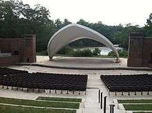 The renovated Matoaka Amphitheater scenically located on the shore of Lake Matoaka.