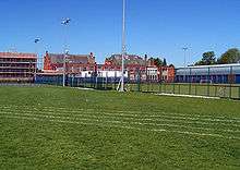 Behind the academic buildings, and backing onto Princess Road are the sports facilities. There is a sports hall with full cricket nets, gymnasium and changing rooms as well as a more modern pavilion/changing room suite. A full-size AstroTurf pitch with adjacent netball courts was built in 2002–2003. In winter the playing fields are used for hockey, rugby and soccer pitches, and in summer for rounders and cricket pitches with high quality wickets. Badminton, basketball and tennis are also played. Throughout the year there are regular inter-school and inter-House matches in all the main sports. The Corps also has an indoor rifle range on the campus.