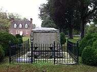 Smallwood never married. The 1790 census shows that he held 56 slaves and a yearly tobacco crop of 3000 pounds.[13] When he died in 1792 his estate, known as Mattawoman, including his home the Retreat, passed to his sister Eleanor who married Colonel William Grayson of Virginia. William Trueman Stoddard was orphaned at age 9 and raised by his maternal grandfather, Bayne Smallwood).[5][6][13][14] His burial site is now the Smallwood State Park in Marbury, Maryland.[15]