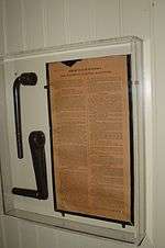 When Winchester died, all of her possessions (apart from the house) were bequeathed to her niece and personal secretary. Her niece then took everything she wanted and sold the rest in a private auction. It supposedly took six trucks working eight hours a day for six weeks to remove all of the furniture from the home, an account disputed by Winchester's biographer.[11] Mrs Winchester made no mention of the mansion in her will, and appraisers considered the house worthless due to damage caused by the earthquake, the unfinished design and the impractical nature of its construction. It was sold at auction to a local investor for over $135,000, and subsequently leased for 10 years to John and Mayme Brown,[12] who eventually purchased the house. In February 1923, five months after Winchester's death, the house was opened to the public, with Mayme Brown serving as the first tour guide.[13] Harry Houdini toured the mansion in 1924 and the newspaper account of his visit (displayed in the rifle museum on the estate) called it the Mystery House.