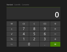 While the traditional Calculator is still included with Windows 8.1, a Metro-style Calculator is also present, featuring a full-screen interface as well as normal, scientific, and conversion modes.[5]