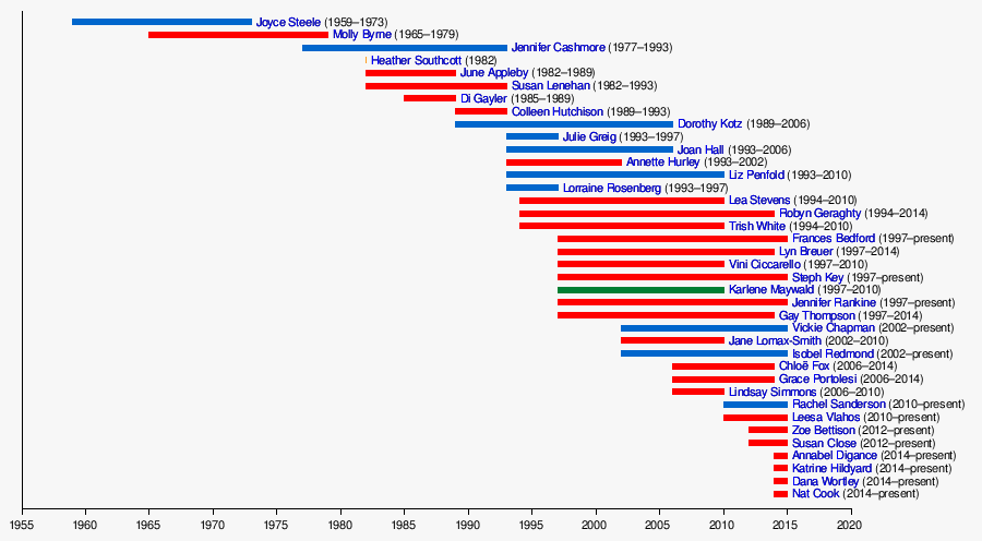 | Annabel Digance | Labor | Elder | 15 March 2014 – |