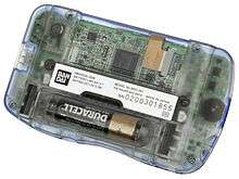 The physical measurements of the WonderSwan Color are 12.8 by 7.43 by 24.3 centimetres (5.04 in × 2.93 in × 9.57 in), slightly larger than the original WonderSwan, and it weighs 3.38 ounces (96 g). Its CPU is a 3.072 MHz NEC V20, and it includes 512 KB of RAM, which is shared between the video RAM and the work RAM. The screen on the WonderSwan Color can display up to 241 colors out of a palette of 4096, and up to 28 sprites per line. It offers backward compatibility with all previous WonderSwan titles.[9] Its LCD screen is also larger than that of the original WonderSwan,[8] measuring 2.9 inches (7.4 cm).[3] The SwanCrystal improves upon the design of the WonderSwan Color through the use of a TFT LCD monitor, which has a superior response time to the FSTN monitor used in the former system. This helped to reduce motion blur in the handheld's graphics. The unit's case was also redesigned to be more durable. Its approximate battery life is 15 hours.[3]
