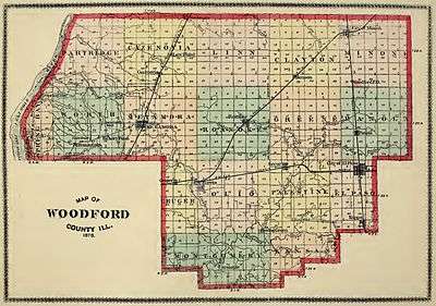 It was during the pre-Civil War years that Woodford County adopted system of subdivision into townships — a reform which was met with strong opposition on the part of some area residents.[37] No fewer than four public elections were held between 1850 and 1854 before the township system was finally approved with the requisite majority of votes.[37]