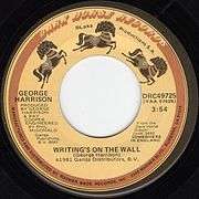 "Writing's on the Wall" is a song by English musician George Harrison from his 1981 album Somewhere in England. The song was also the B-side of the album's lead single, "All Those Years Ago", which Harrison wrote as a tribute to his former Beatles bandmate John Lennon. In his lyrics, Harrison sings of the transient nature of life and the need to recognise a spiritual purpose. Although the song was written long before Lennon's murder in New York in December 1980, the lyrics' reference to how easily friends can be shot down and killed led listeners to interpret it as a further comment on Lennon's death.