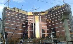 Wynn Palace, also referred to as Wynn Palace Cotai,[3] is an integrated resort owned and operated by Wynn Resorts in Macau, China. As the company's first resort on the Cotai Strip and third skyscraper in Macau,[2][4] Wynn Palace will feature a luxury hotel[5] with 1,700 rooms,[6] a casino, an 8-acre performance lake, gondolas, meeting facilities, spa and salon, and retail and dining venues.[2][4] With 29 floors[7] and a construction floor area of around 450,000 square meters,[5] Steve Wynn has described it as "the most aggressive, ambitious and lovely project" undertaken by Wynn Resorts.[8] It is estimated that construction of the overall development will cost USD $4.1 billion.[2] After construction commenced in 2013, Wynn Palace was initially scheduled to open on March 25, 2016. This date was later changed to June 25, 2016 due to general construction delays.[2] Opening date was on August 22, 2016.[6] On January 28, 2016, Forbes described Wynn Palace's then upcoming debut as one of the "20 Most Anticipated Hotel Openings Of 2016."[9]