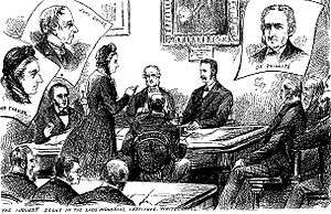 Coroner Wynne Baxter conducting the inquest into the murder of Annie Chapman at the Working Lads' Institute, Whitechapel Road