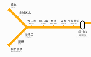 Yanfang Line of the Beijing Subway (Chinese: 北京地铁燕房线; pinyin: běijīng dìtiě yānfángxiàn) is a rapid transit rail line under construction in Beijing. The planned route contains 11 stations in total.