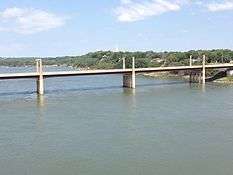 Yankton was the first capital of Dakota Territory. It is named for the Yankton tribe of Nakota (Sioux) Native Americans; Yankton is derived from the Nakota word I-hank-ton-wan ("the end village").[10] Yankton is located on the Missouri River just downstream of the Gavins Point Dam and Lewis and Clark Lake and just upstream of the confluence with the James River. The United States National Park Service's headquarters for the Missouri National Recreational River are located in the city. The Human Services Center was established as a psychiatric hospital in 1882 and is on the National Register of Historic Places. Yankton is commonly referred to as the "River City",[11] due to its proximity to the Missouri River and the importance that the river played in the city's settlement and development. Yankton has also earned the nickname, "Mother City of the Dakotas", due to the early important role it played in the creation and development of the Dakota Territory, which later became the 39th and 40th U.S. states of North and South Dakota, respectively.[12]