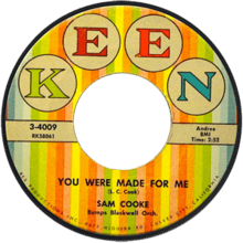 "You Were Made for Me" is a song by American singer-songwriter Sam Cooke, released on March 24, 1958 by Keen Records. The song peaked at number seven on Billboard's Hot R&B Sides chart, and also charted within the top 40 of the Billboard Hot 100.