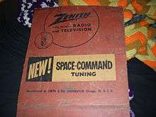 The company was co-founded by Ralph Matthews and Karl Hassel[2] in Chicago, Illinois as Chicago Radio Labs[3] in 1918 as a small producer of amateur radio equipment. The name "Zenith" came from ZN'th, a contraction of its founders' ham radio call sign, 9ZN. They were joined in 1921 by Eugene F. McDonald,[3] and Zenith Radio Company was formally incorporated in 1923. Zenith introduced the first portable radio in 1924,[3] the first mass-produced AC radio in 1926,[3] and push-button tuning in 1927.[3] It added automobile radios in the 1930s with its Model 460, promoting the fact that it needed no separate generator or battery, selling at US$59.95.[4] The first Zenith television set appeared in 1939, with its first commercial sets sold to the public in 1948.[3] The company is credited with having invented such things as the wireless remote control and FM multiplex stereo. In fact, Zenith established one of the very first FM stations in the country in 1940 (Chicago's WWZR, later called WEFM, named for Zenith executive Eugene F. McDonald), which was among the earliest FM multiplex stereo stations, first broadcasting in stereo in June 1961. The station was sold in the early 1970s and is now WUSN. Zenith also pioneered in the development of high-contrast and flat-face picture tubes, and the multichannel television sound (MTS) stereo system used on analog television broadcasts in the United States and Canada (as opposed to the BBC-developed NICAM digital stereo sound system for analog television broadcasts, used in many places around the world.) Zenith was also one of the first companies to introduce a digital HDTV system implementation, parts of which were included in the ATSC standard starting with the 1993 model Grand Alliance. They were also one of the first American manufacturers to market a home VCR, selling a Sony-built Betamax video recorder starting in 1977.