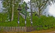 In the middle of the village there is a group of 3 crosses built in different years. Another two crosses are built on the bank of the Ūla River and at a crossroad near the cemetery.[6] Zervynos was one of the earliest subjects of ethnographic expeditions and a monograph, published in 1964 and devoted solely to the village and its heritage, started a trend of localized ethnographic research.[8]