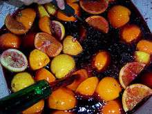 Zurracapote (sometimes abbreviated as zurra) is a popular Spanish alcoholic mixed drink, similar to sangría. It consists of red wine mixed with fruit such as peaches and lemons, sugar, and cinnamon. The concoction is then traditionally left to steep for several days, though some recipes call for the addition of other alcoholic beverages, juices, and fruit extracts. The result is a mild-to-medium alcoholic drink, similar to sangría.